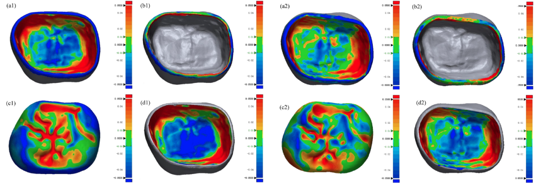 图1 立体光刻3D打印全瓷冠三维偏差比对分析。