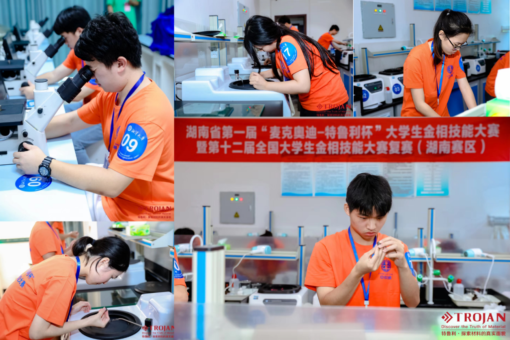 我校参赛选手经过三个月的刻苦训练,不断提升自身的操作技能和竞技水平,克服实践过程中的各种困难,为参赛做了充分准备。在比赛过程中,全身心投入,一丝不苟、精益求精地完成打磨、抛光、腐蚀等金相试样制备工序的每一个环节,充分展现了机械学子的职业能力和工匠精神。(责编/王荣荣 初审/徐湛 终审/胡文静)