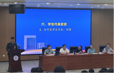 会议伊始,全体成员起立,奏唱国歌。随后周勇、谭晶莹、张敬、李凯分别讲话,就学校和学院发展建设情况,师资队伍、科研状况,研究生与本科生教育管理,学业规划,学风建设与社会实践,学生思想政治教育和日常管理等方面向新生作了详细介绍与指导。2024 级本科生代表张文静、研究生代表黄琪彪、专升本学生、退伍军人代表刘渤、高年级学生代表黄锡文进行发言。