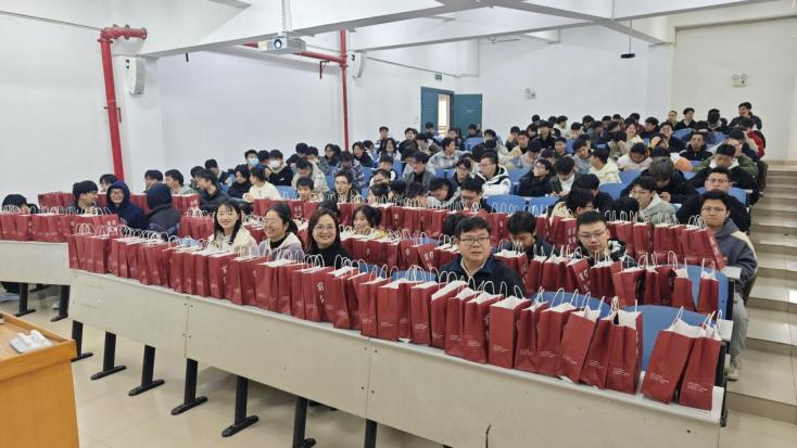 慰问现场气氛活跃,学院领导老师们为200余名考研学子送上心想事“橙”大礼包,内含前程似锦礼品袋、暖宝宝、士力架、橙子等寓意丰富的礼物,每一份慰问品都饱含着学院对考研学子的殷切关怀和深深祝福。