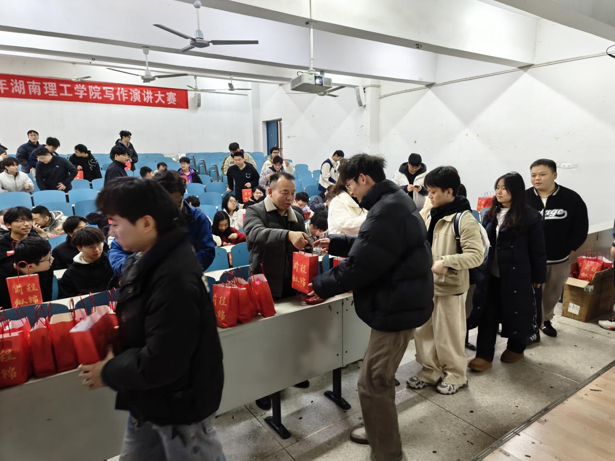 现场还为考研学子们送上了精心筹备的“考研慰问礼包”。礼包内不仅有寓意“前程似锦”的定制礼品袋,更有补充能量的士力架、薯片,驱散寒意的暖宝宝,以及象征“心想事成”的橙子等贴心好物。每一份慰问品都承载着学院对学子们的深切关怀与美好期许,让寒冬中的备考之路暖意融融,也让同学们感受到了来自学院大家庭的强大支持与温暖力量。