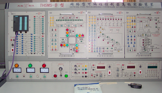 2)PLC实验分室:服务的课程主要是机电传动与控制、可编程序控制器。主要仪器设备有网络型可编程控制器高级实验装置(采用西门子系列的PLC)和相应的实验对象。在此实验平台上可以完成电梯模型、挖掘机模型、机械手模型、材料分拣模型、立体仓库模型、小车运动模型实物教学实验。