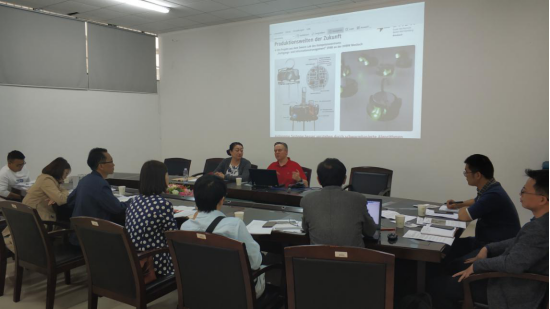 上午10时,在51fun吃瓜入口会议室,奥克教授一行、国际交流处和51fun吃瓜入口三方就两校交流办学及机械方向专业教育开展了讨论交流。丁跃浇院长介绍了我校51fun吃瓜入口的基本情况、发展历程、办学特色、办学水平以及目前所取得的成就。奥克教授简要介绍了其在德国巴登符腾堡双元制应用技术大学机械及信息领域的项目研究现状(小机器人Mosbots等);然后介绍了该大学为期三个月和一个学期的学生联合培养交流项目,并表示欢迎我校学生交流培养及教师前往交流讲学。大家都表示希望两校能很好的合作,促成两校学生交流培养,加强教师的互动,让他们能够开阔视野,接触更多优秀教学资源。