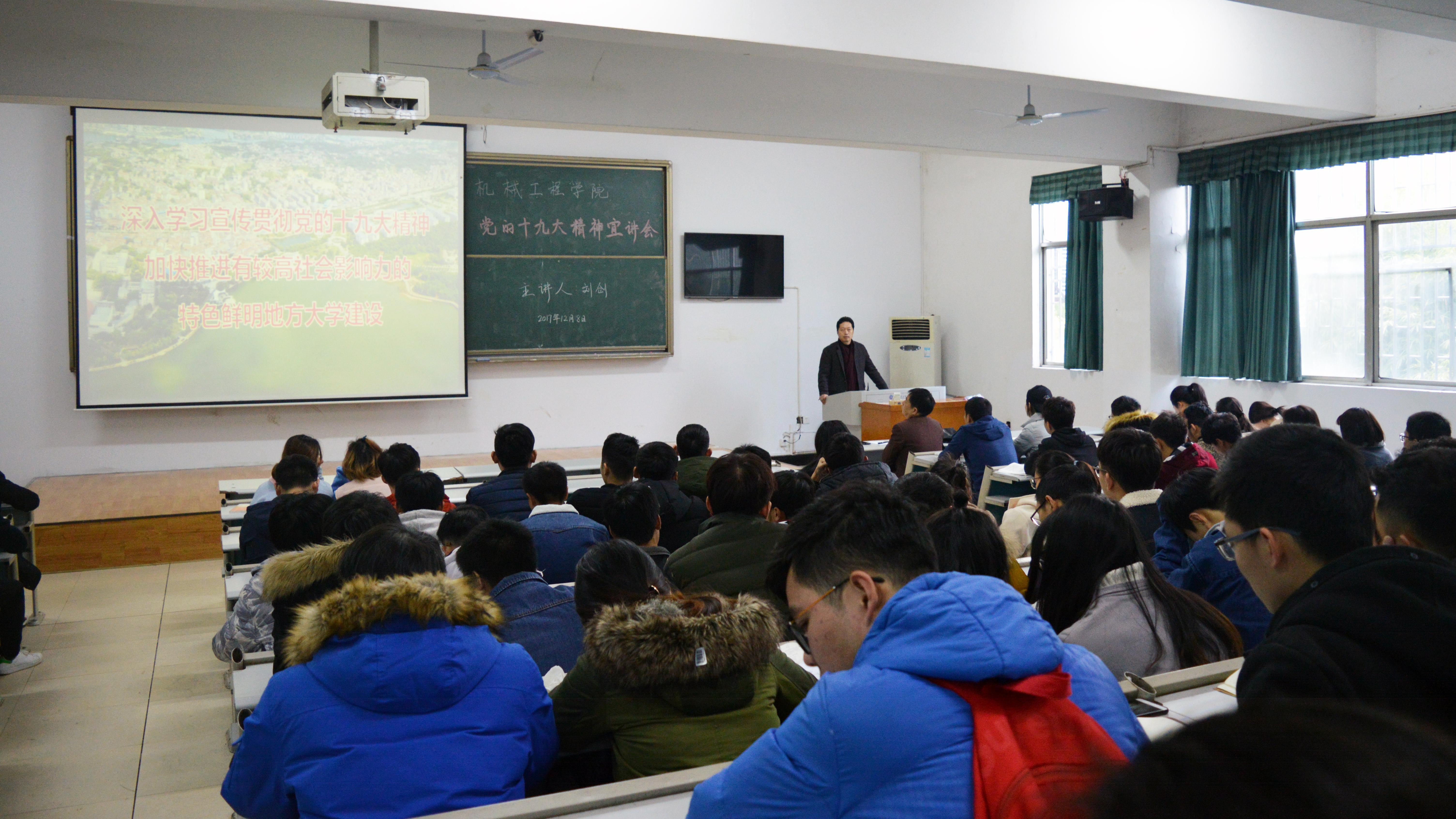 12月8日下午16:00,机械学院分党校入党积极分子培训课暨深入学习贯彻党的十九大精神宣讲大会在7T1教室举行。本次宣讲会邀请到学校党委委员、组织部部长刘创教授主讲,机械学院党总支书记陈积光主持宣讲大会。14、15、16级辅导员、院团总支学生分会副部长以上成员、学院所有学生正式党员、预备党员、本学期党员发展对象、第37期入党积极分子培训班所有学员及学院“新星”理论学习组所有成员出席本次会议。
