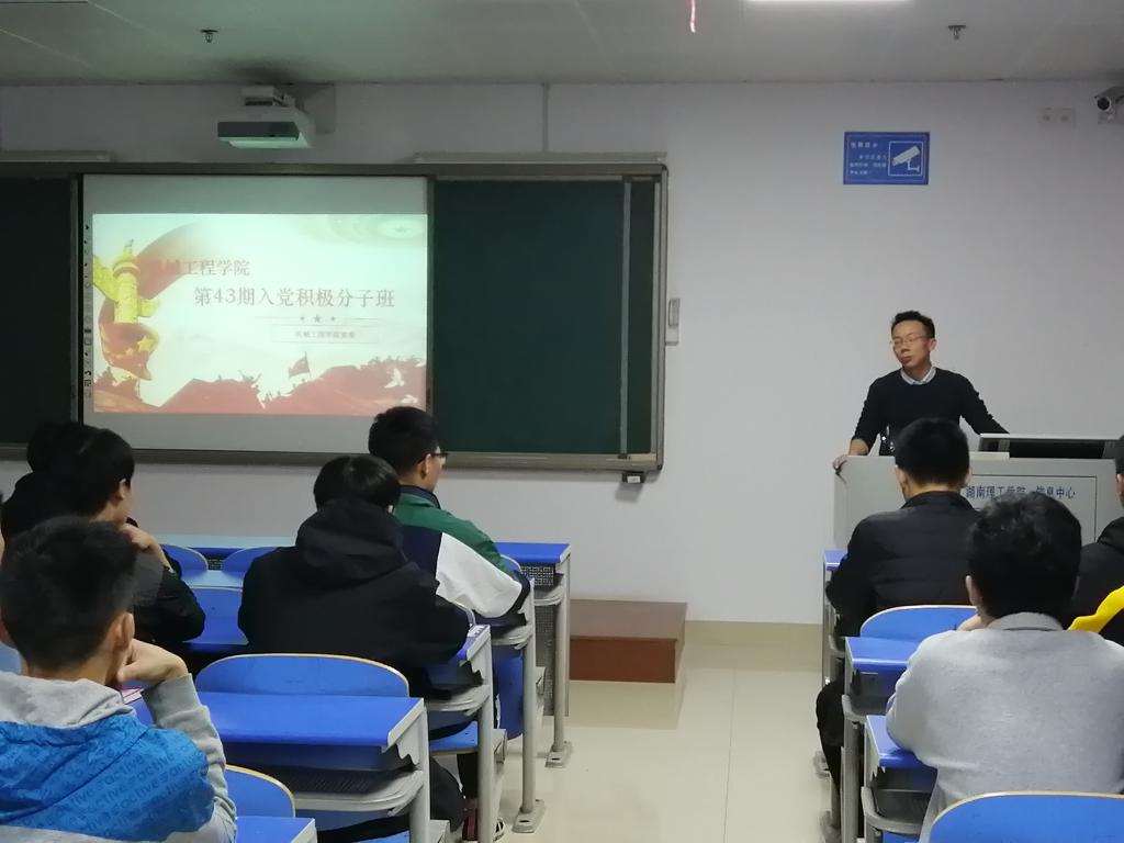 为加强我院第43期入党积极分子的党性修养,10月16日晚,第43期入党积极分子系列培训讲座开班仪式于12栋教学楼309教室召开。学生党支部书记吁锤主持,校组织员何铁勇老师、学工办主任王子嘉出席此次会议,第43期入党积极分子全体参加。