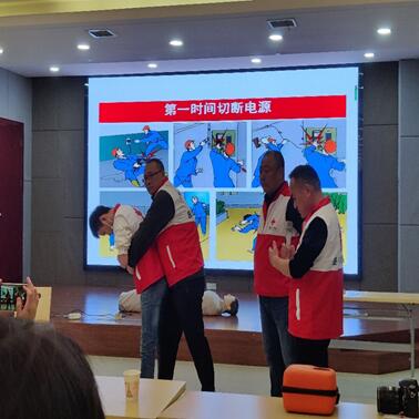 宣讲中,徐湘平简要介绍了红十字会的历史和人道主义援助事迹,提出了省内紧急救护知识普及率低下的问题。他强调了紧急救护知识的重要性并详细解释了从流鼻血怎样止血到冠心病、脑卒中、代谢紊乱综合征等疾病的特征、发病症状以及如何及早干预和急救的方法。在活动接近尾声时,徐湘平还组织学生学习使用AED来进行模拟心肺复苏。