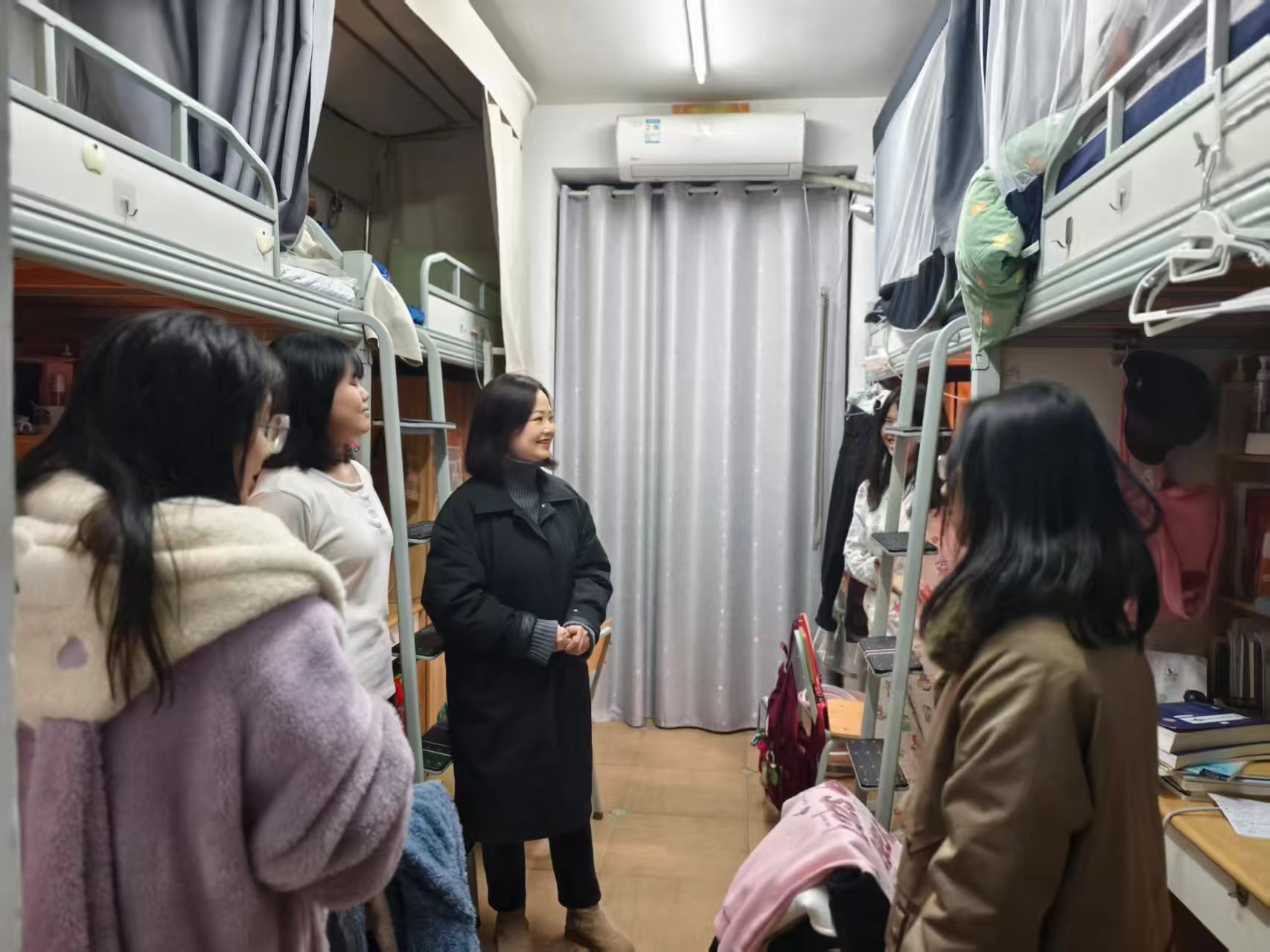为深入开展师生联系交流,进一步加强学生宿舍安全管理,推进宿舍文明建设工作,3月4日晚,我院党委书记徐丹、副院长周勇(主持工作)、张敬、谭晶莹、党委副书记李凯带领全体辅导员、班主任深入学生宿舍,开展走访活动。