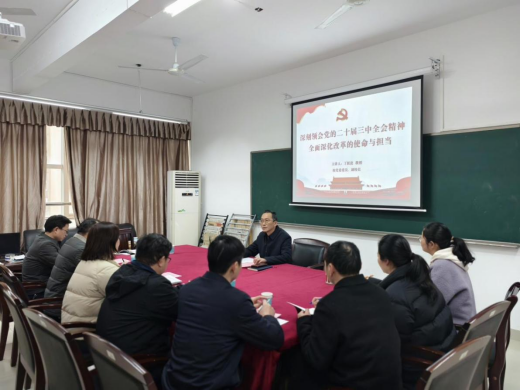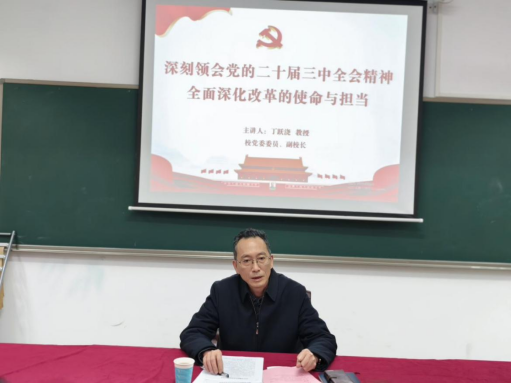 为深入学习贯彻党的二十届三中全会精神,持续深入推进“七进两联系”工作,2月25日上午,我院在16310B会议室开展以“全面深化改革的使命与担当”为主题的党课。校党委委员、副校长丁跃浇主讲,院党委书记徐丹主持,学院党委班子成员及部分师生党员代表参加。