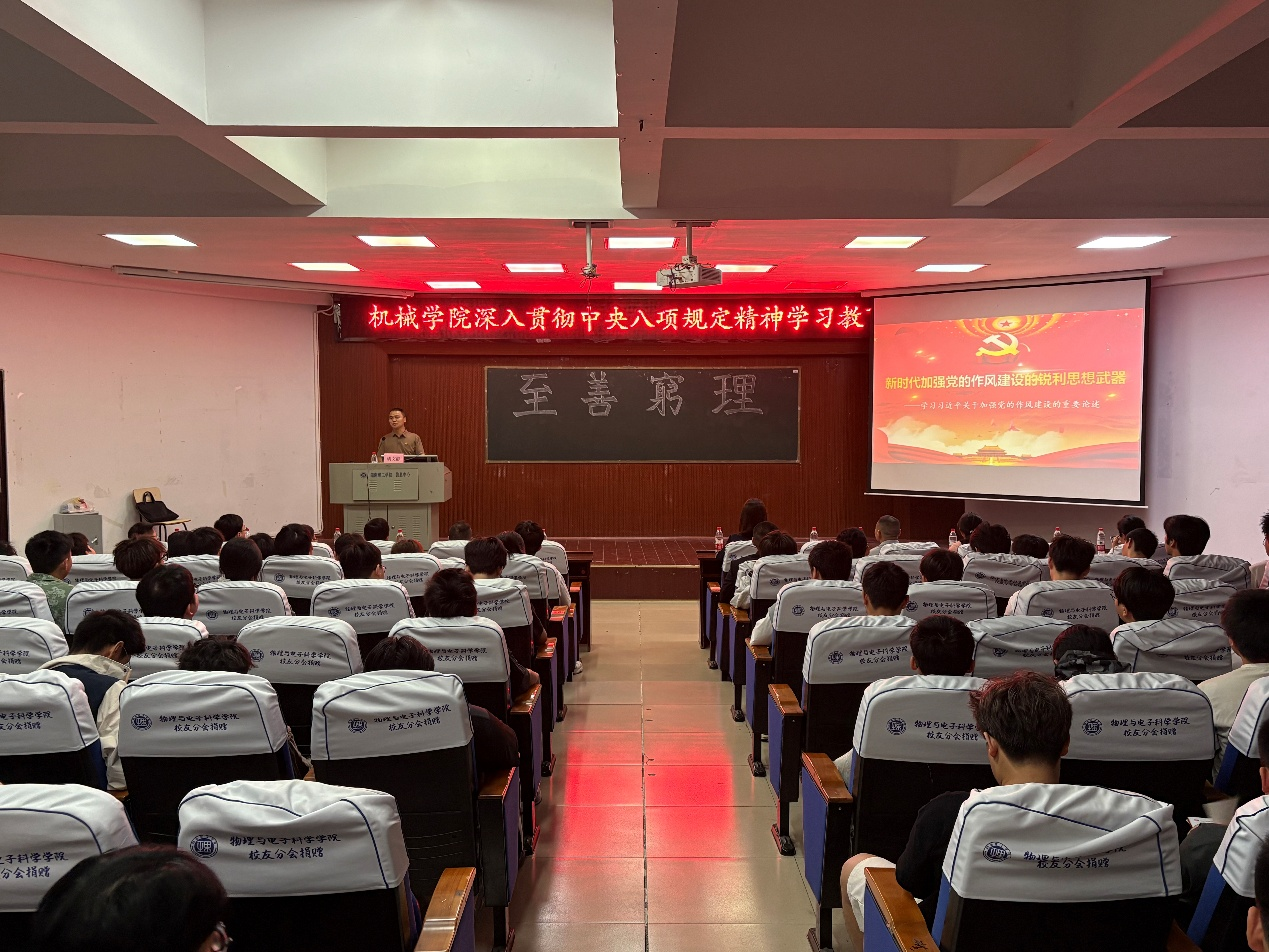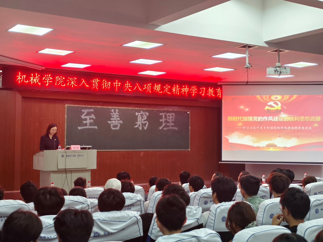 4月22日19:00,51fun吃瓜入口在6栋会议厅举行深入贯彻中央八项规定精神学习教育暨第52期入党积极分子党校培训第一课,本次党课特邀校党委委员、组织部部长胡文静主讲,学院党委书记徐丹、副院长(主持工作)周勇、副书记李凯,各教师、学生党支部书记及专职组织员出席,全体学生党员以及第51、52期入党积极分子培训班学员参加,会议由徐丹主持。