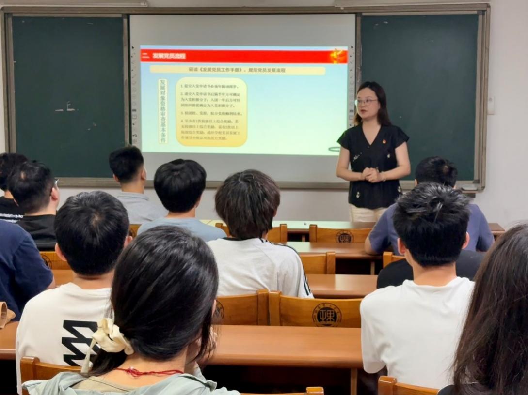 随后,徐丹从政治觉悟、道德品质、工作表现、群众基础等多个维度,全面且深入地剖析成为一名合格入党积极分子所需具备的综合素质与条件。她告诫大家,入党不仅是一份至高无上的荣誉,更肩负着一份沉甸甸的责任,每一位怀揣着入党热忱的同志都应以更高标准严于律己,确保在思想和行动上与党中央高度一致,稳步向党组织靠拢。结合当下复杂多变的社会形势以及学院自身的实际情况,徐丹为学员们在学习、生活和工作中践行入党条件提出具体要求和建议,鼓励学员们在各自专业领域积极发挥先锋模范作用,以实际行动争取早日成为一名光荣的中国共产党党员。