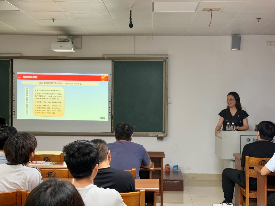 为深入贯彻中央八项规定精神学习教育,扎实筑牢党员发展根基,5月14日18:30,我院于12409教室开展以“厘清入党条件,在作风建设中强化党员义务和权利意识”为主题的第52期入党积极分子培训第二课。本次培训由学院党委书记徐丹主讲,第52期入党积极分子培训班全体学员参加。