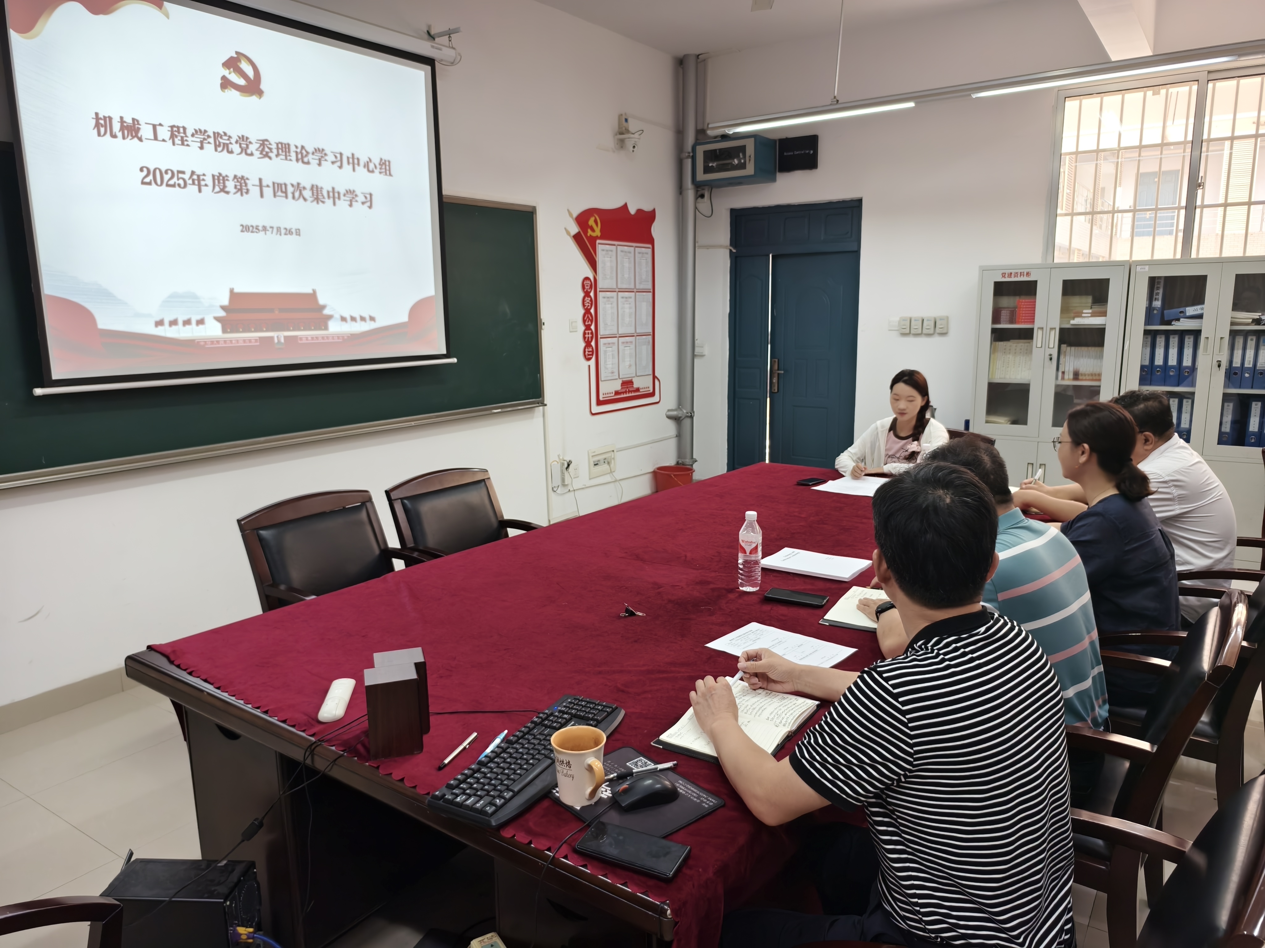 7月26日上午9:00,机械学院党委理论学习中心组在16301B会议室举行2025年度第十四次集中学习,学院党委班子成员参加,会议由党委书记徐丹主持。
