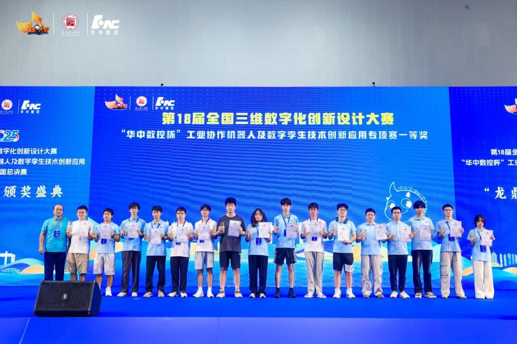 2025年8月17日-19日,在厦门理工学院举行的2025“第18届全国3D大赛“华中数控杯”工业协作机器人及数字孪生技术创新应用专项赛全国总决赛”,我院学子在教师党员的带领下从全国240多所高校队伍中脱颖而出,荣获全国一等奖1项、全国三等奖1项的优异成绩!