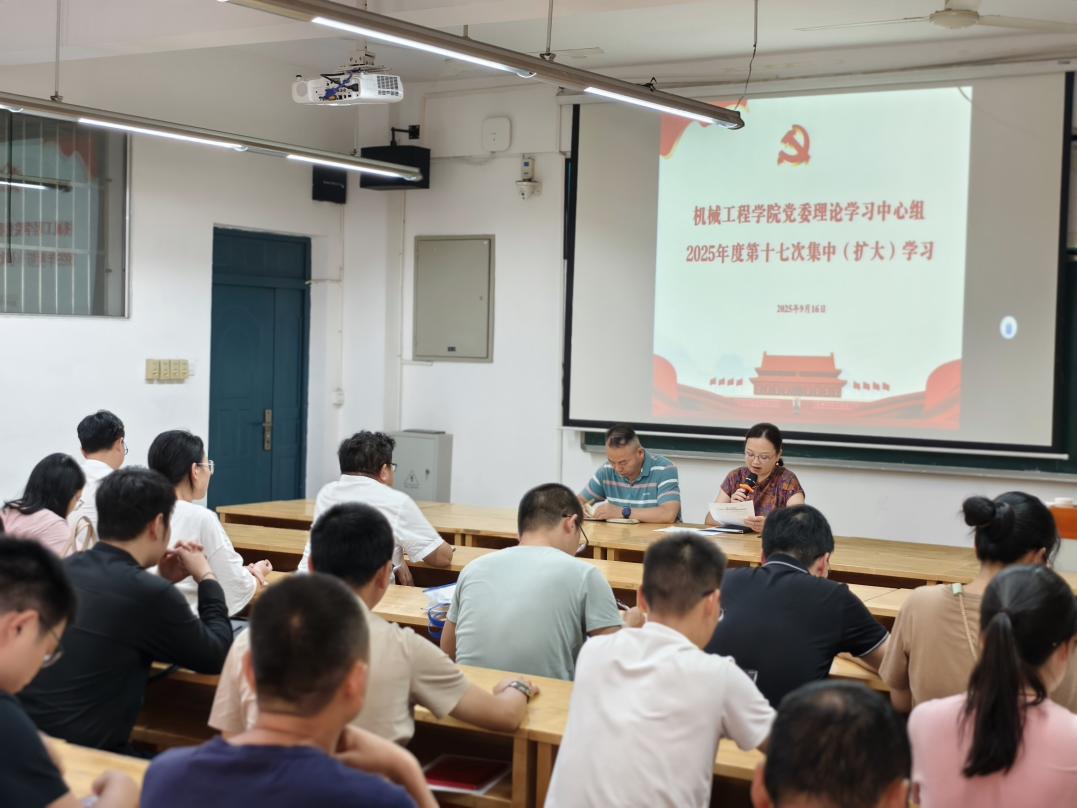 9月16日14:30,机械学院党委理论学习中心组在16310教室举行2025年度第十七次集中(扩大)学习,学院党委班子成员、全体教师参加,会议由党委书记徐丹主持。