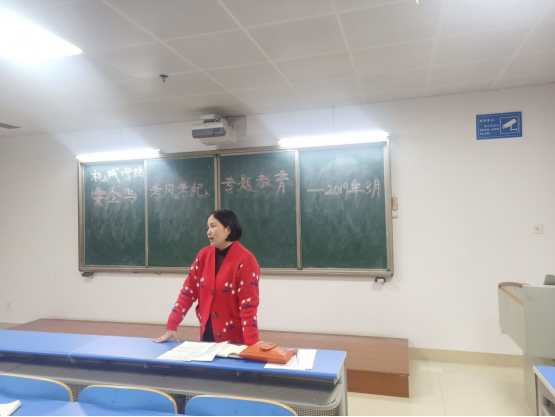 李紫薇老师讲话内容主要包括党建工作及有关毕业生的就业问题。她强调党建工作要诚信,必须实事求是,不能谎报。李老师也提及了毕业生的应聘条件,希望大家能认真地学习专业知识,成为一个有真才干、真本领的人。王子嘉老师主要强调了考风考纪的问题,针对学生考试中出现的五大问题,并提出了两点要求。她强调要加强学风建设,要求各班召开班会,为同学们营造更好的学习氛围;并希望班干部多做工作提高同学们的纪律意识。刘尘轩老师主要讲述了有关征兵及党员发展方面的问题。他简要地介绍了征兵的方式、当义务兵的福利及应征入伍后未来的规划,并支持有想法的同学来找他报名。随后,刘老师又介绍了有关本学期党员发展的注意事项。吁锤老师主要针对本期学生的寝室文明、校园文化建设等重点工作、等。吁老师要求大家学习党的十九大精神,积极开展团课。他还鼓励大家积极参加机械创新节、校园文化节、暑期三下乡等活动,以此来提高自己。此外,吁老师还提及了同学们的心理健康问题,希望大家多多关注身边同学们的心理健康。蔡奕老师最后发表讲话重点强调安全,并用历年来安全事故作为典型案例来告诫同学们要随时注意安全;她要求班委要着重加强班级建设,增强班级凝聚力;强调学生干部要学会合理安排时间,注重能力的培养。