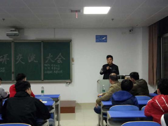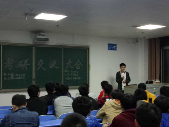 交流会现场,考完研的学生代表们分别从不同方向为在场同学们讲述自己的考研经历,旨在让同学们能够全面的了解关于考研的一些情况。例如考上广东工业大学的王斌同学跟大家分享了自己的学习心得,还特别跟大家讲述了自己考研复试时的一些经历。考上东华大学的孙锡科同学则规劝在场的同学如果下定决心考研就一定要克服自己贪玩的心,并且通过讲述他自己一年多来的付出告诉大家坚持到最后就成功了一大半。