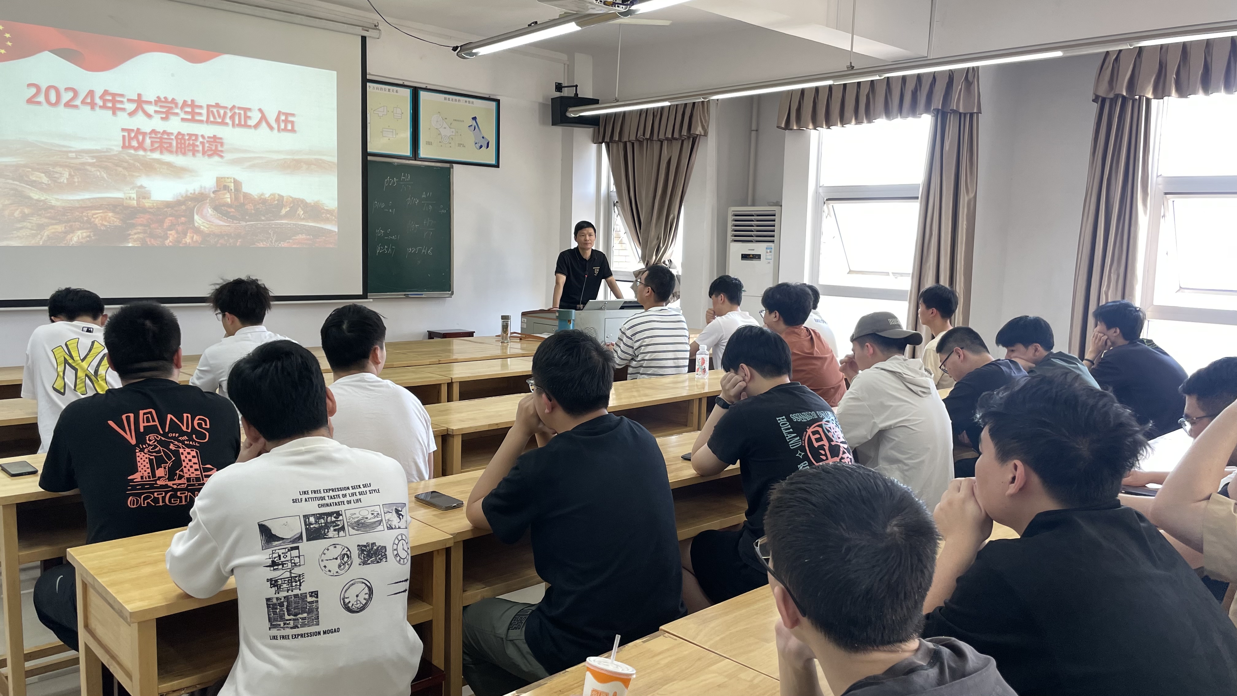 为鼓励更多毕业生投身军营建功立业,我院由分管学生工作副书记、武装专干、毕业年级辅导员组成的征兵工作小组对应届毕业男生的求职就业状态、学业情况、家庭经济状况以及个人身体条件和思想表现细致摸底,精准识别预征对象,5月28日,学院召集近30名毕业男生开展了一场别开生面的征兵动员会。