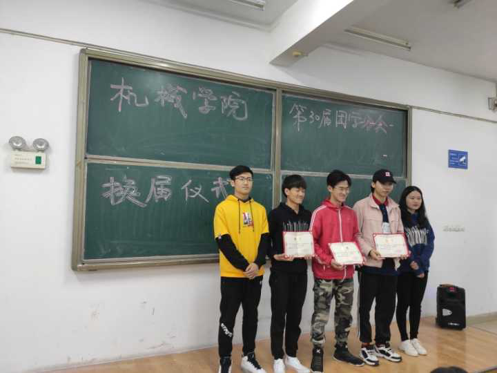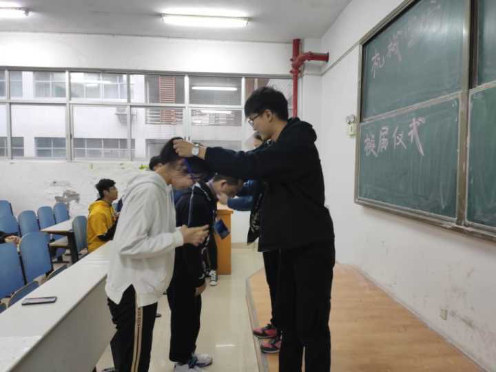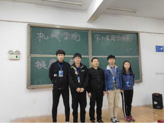 本次换届仪式由新一届团学副主席毛一茹主持。仪式伊始,由机械学院团总支书记吁锤老师为第29届主席团颁发聘书,这既是对他们在团学工作一年的肯定,又是在鼓励他们继续保持这份为集体着想,为集体奉献的热心。随后吁锤老师又为第30届主席团颁发工作证,勉励他们把团学带领的更好,做出成绩来。接着仪式第三项29届主席团与30届主席团分别为自己所在的那一届干部分发聘书与工作证。在这个过程中,整个会场洋溢着笑容,但在场的每个团学人都清楚这笑容后有着不舍,有着不安,有着期待。最后第29届团学分会主席张毅致词。张毅首先感谢大家对29届团学分会做出的努力以及对他工作上的支持,也为第29届团学分会的干事到如今能够有很大进步而感到高兴,同时也鼓励第30届团学分会的同学们再接再厉,不忘初心,砥砺前行。肩负湖南理工学院创大申博的重任,他期待着团学分会的同学们能够万众一心,共创辉煌。